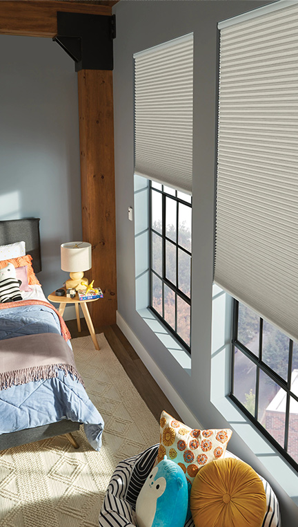 Honeycomb shades can be a great way to express your personality and style depending on your choice of fabrics, textures, graphics while providing privacy from the outside.